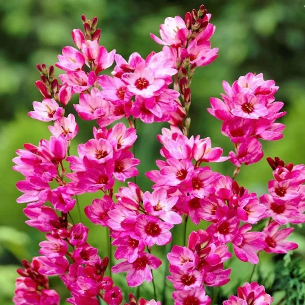 Fiecare pachet conține 10 bulbi de Ixia, care vor înflori în lunile de vară, oferind un spectacol floral vibrant și captivant. Aceste flori sunt cunoscute pentru diversitatea lor de culori, de la nuanțe delicate de roz și alb, până la tonuri îndrăznețe de roșu și galben, creând un adevărat festival de culori în grădina dumneavoastră.