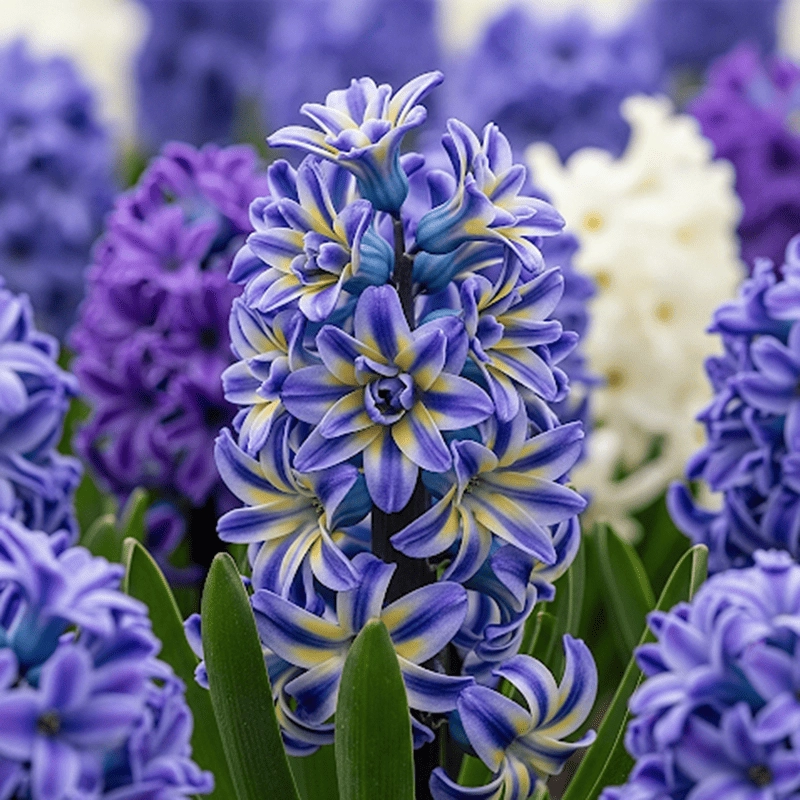 O zambilă cu flori duble de o eleganță deosebită, ce combină un albastru regal cu striuri luminoase de galben, ca o scânteie de bucurie într-un regat înflorit. Această varietate rară adaugă un efect vizual deosebit în grădină sau în aranjamentele de interior, fiind o alegere perfectă pentru a crea un punct de atracție plin de rafinament și strălucire.