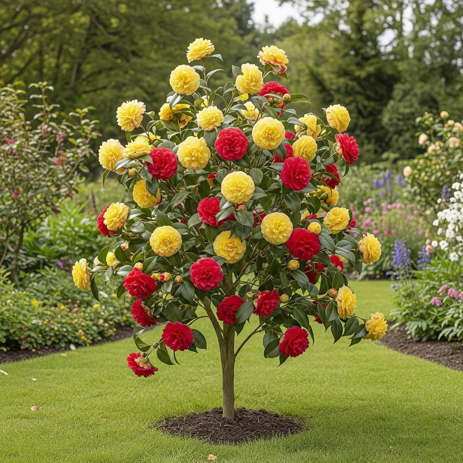 Camelia Japonica Bicolor Rosu cu Galben în ghiveci de 3 l este un arbust ornamental elegant, perfect pentru a adăuga o notă de culoare oricărei atmosfere. Cu o înălțime de 50-60 cm, frunzele sale verzi lucioase și florile oferă un spectacol de frumusețe între lunile octombrie și martie. Această plantă preferă lumina indirectă și un sol umed, bine drenat, fiind ideală pentru decorarea balcoanelor sau grădinilor cu umbră parțială. Alege Camelia Japonica Bicolor Rosu cu Galben pentru a transforma orice spațiu într-o oază de sofisticare!