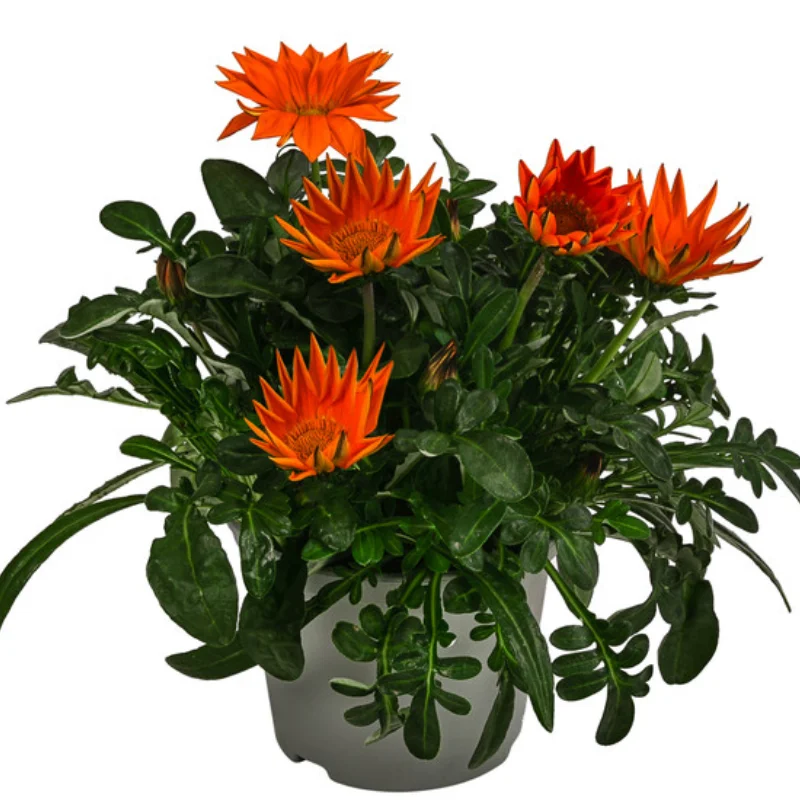 Gazania Splendens - Portocaliu la Ghiveci este mai mult decât o simplă plantă; este o explozie de culoare și vitalitate care va transforma orice grădină sau terasă într-un colț de rai. Cu florile sale portocalii strălucitoare, această plantă aduce un strop de soare în fiecare zi, fiind perfectă pentru a adăuga un accent vibrant în peisajul tău.
