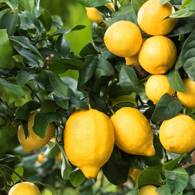 - Fructe ovale și suculente: Cu o culoare galben-intens, aceste lămâi nu sunt doar atrăgătoare, ci și extrem de gustoase, ideale pentru a adăuga un strop de aciditate preparatelor culinare sau pentru a prepara băuturi răcoritoare.