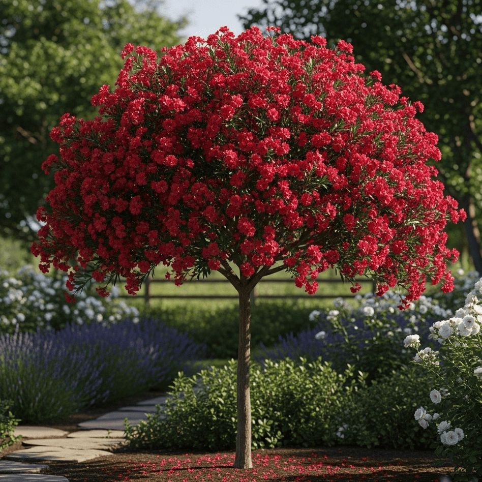 - Dimensiuni: La maturitate, leandrul poate atinge o înălțime între 2 și 5 metri, în funcție de varietate și condițiile de creștere. Pomisorul de 50-60 cm este perfect pentru a fi integrat în grădini de dimensiuni variate, aducând un aspect elegant și sofisticat.