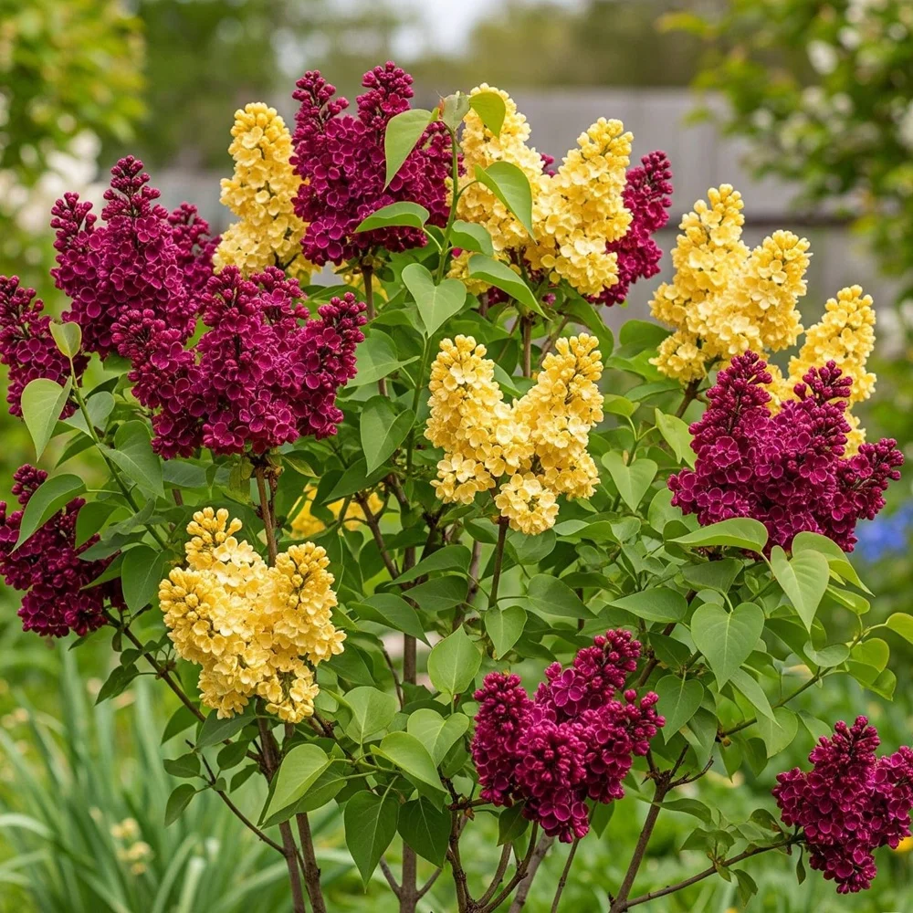 Acest liliac bicolor este o adevărată bijuterie pentru grădina ta. Cu flori duble, bogate și parfumate, în nuanțe spectaculoase de bordo și galben, va aduce o explozie de culoare și eleganță în orice spațiu verde.