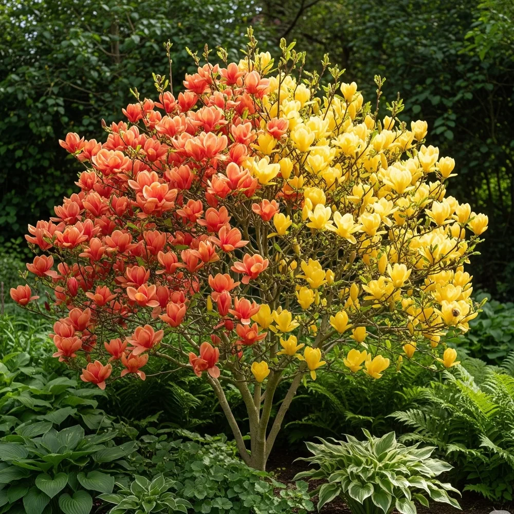 Adaugă o notă vibrantă și luminoasă spațiului tău verde cu un exemplar unic ce combină două dintre cele mai încântătoare soiuri de magnolii: Magnolia ‘Peach’ (Portocalie) și Magnolia ‘Yellow River’. Acest arbore special, cu o înălțime de 25-35 cm, este rezultatul unei altoiri duble pe același portaltoi, oferind un spectacol de culoare și parfum inedit, cu flori delicate de un piersică-portocaliu alături de cele de un galben lămâi vibrant, toate pe aceeași plantă!