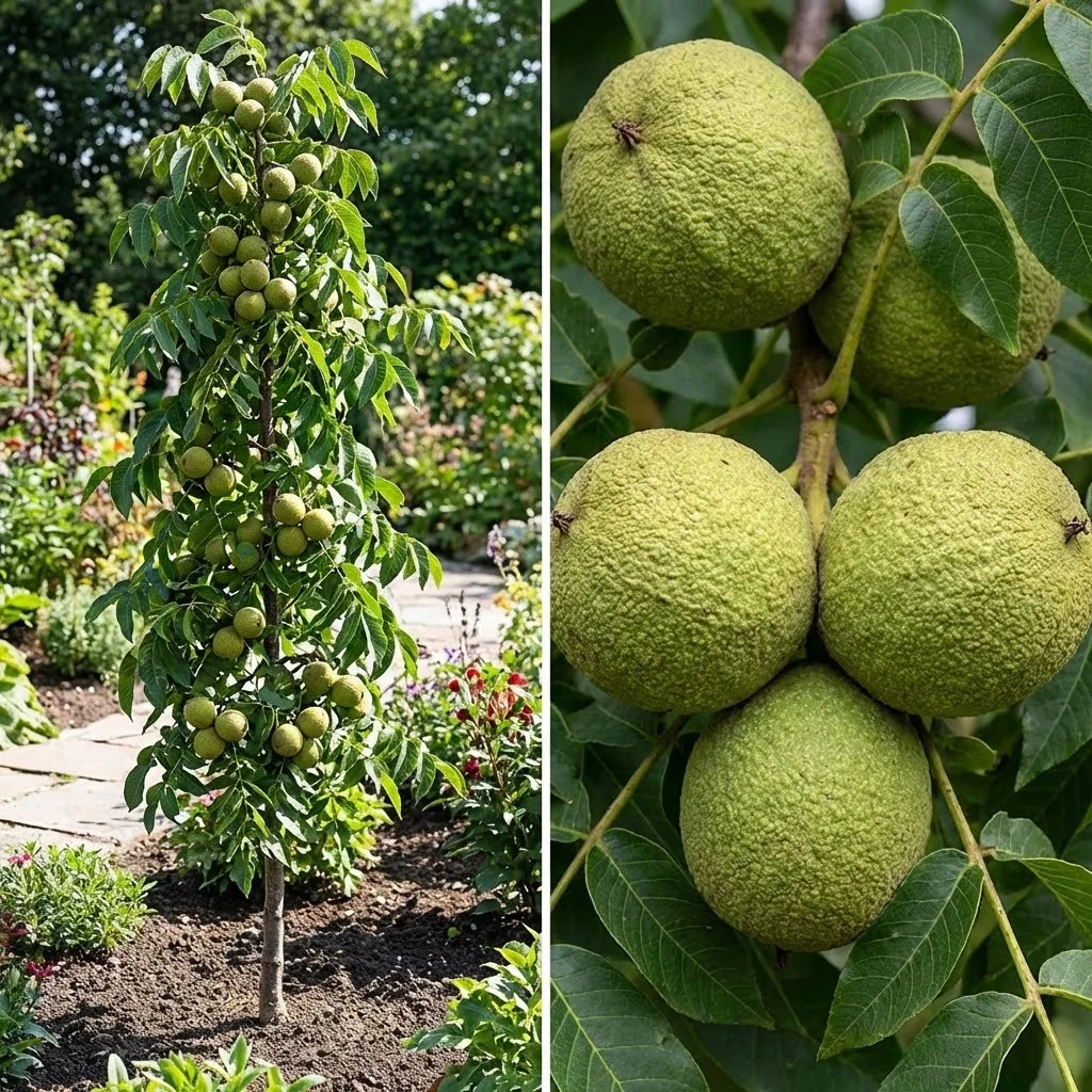 Fructe Unice: Produce nuci negre, renumite pentru miezul lor extrem de aromat, bogat în uleiuri esențiale și cu proprietăți medicinale superioare nucilor comune.