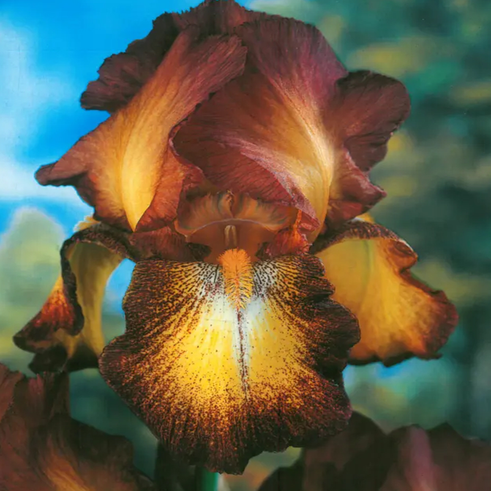 Rizomi de Iris Germanica Black Brown - O alegere perfectă pentru grădinile care doresc să strălucească de eleganță și frumusețe! Această plantă perenă impresionantă, cu o înălțime de 70-90 cm, se remarcă prin florile sale mari, ce variază în nuanțe de la albastru profund la violet vibrant, creând un adevărat spectacol de culori în fiecare colț al grădinii tale.